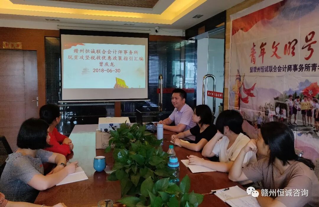 为发挥“青年文明号”的示范带头作用,展现青年团员积极向上的精神风貌,6月30日,赣州恒诚会计师事务所开展“脱贫攻坚税收优惠政策”知识专题讲座。